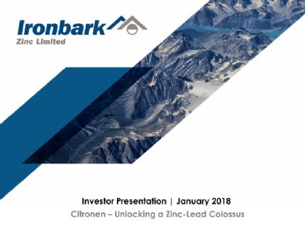 Ironbark Zinc Limited (ASX:IBG) (OTCMKTS:IRBGY) is listed on the Australian Securities Exchange and is seeking to become a base metal mining house. Ironbark seeks to build shareholder value through exploration and development of its projects and also seeks to actively expand the project base controlled by Ironbark through acquisition. The management and board of Ironbark have extensive technical and corporate experience in the minerals sector. The wholly owned Citronen base metal project currently hosts in excess of 13.1 Billion pounds of zinc (Zn) and lead (Pb). Full details refer to ASX announcement 25 November 2014 - Citronen Project Resource Update - JORC 2012 compliant resource.