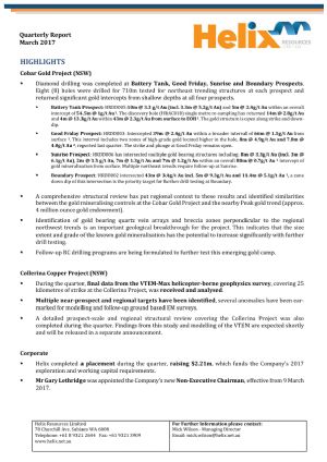 Helix's Board and Management team are focused on creating opportunities to increase shareholder value from the quality assets in the Company's project portfolio.
