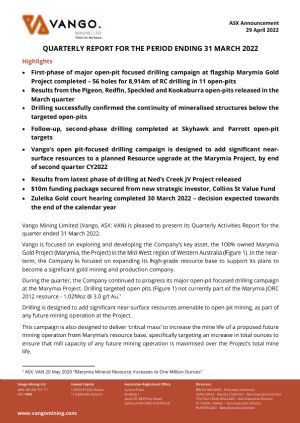 Vango is focused on growing its high-grade gold resource to support a proposed stand-alone gold mining and production operation at Marymia. The Project is located along strike, immediately to the north of Superior Gold's (CVE:SGI) Plutonic Gold Mine which has produced more than 5.5Moz of gold.