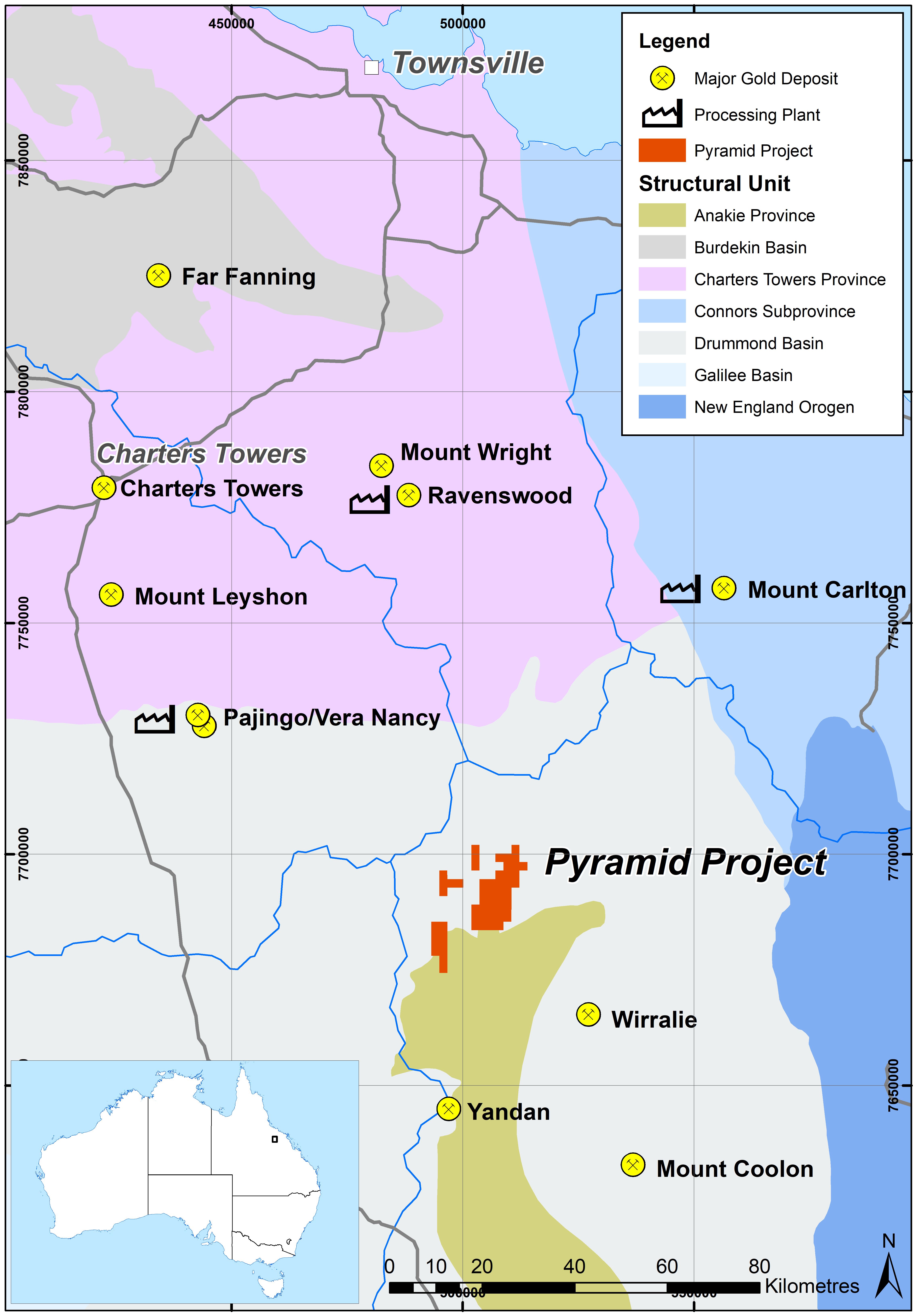 ASX:AVW) have signed a binding Terms Sheet under which, subject to it satisfying its due diligence requirements, Minotaur may acquire 100% ownership of the Pyramid tenement group located 180km south of Townsville (Figure 1*). The project, covering 150km2, embraces two main areas prospective for gold, being the West Pyramid Range and East Pyramid Range (Figure 2*).
