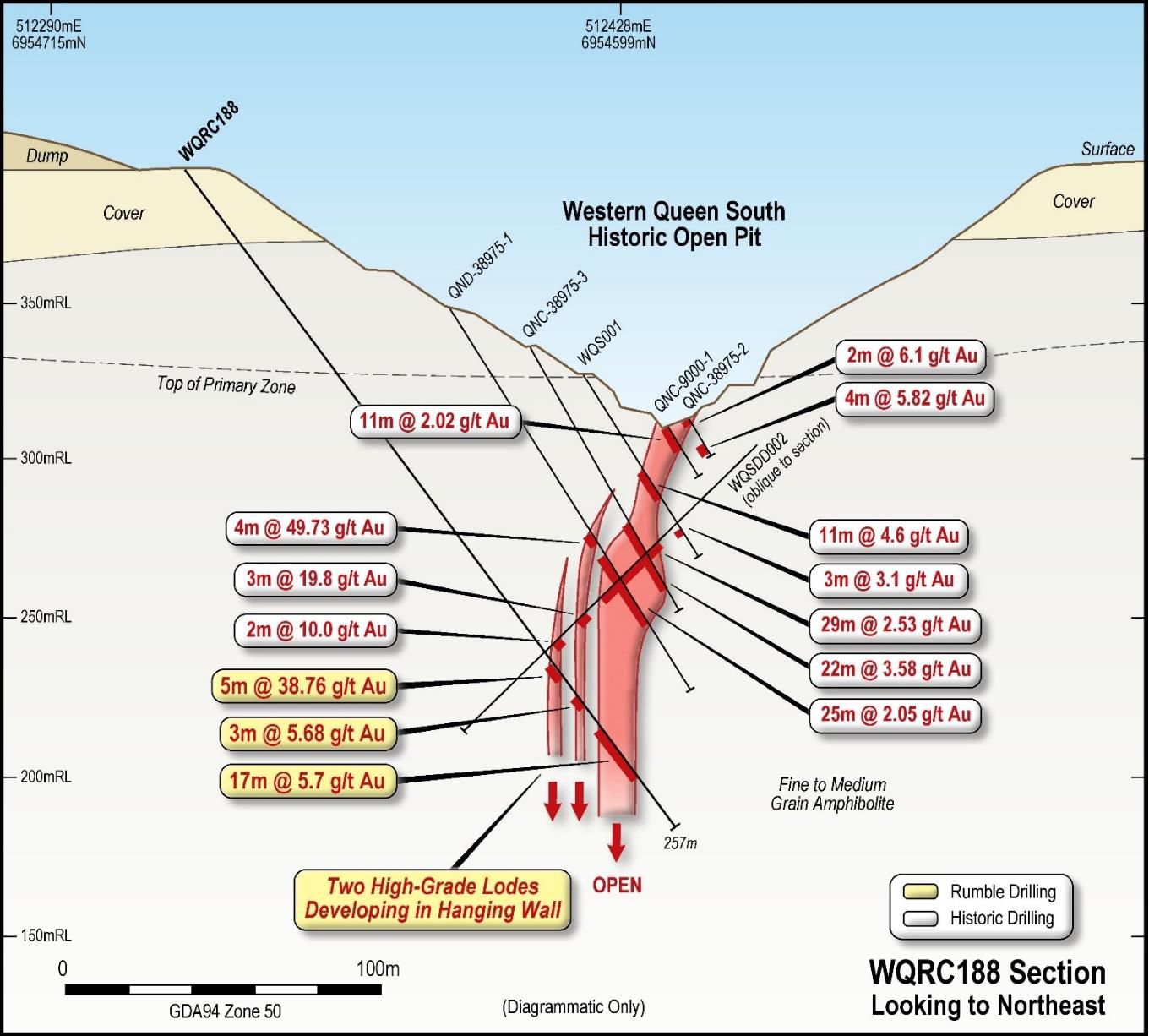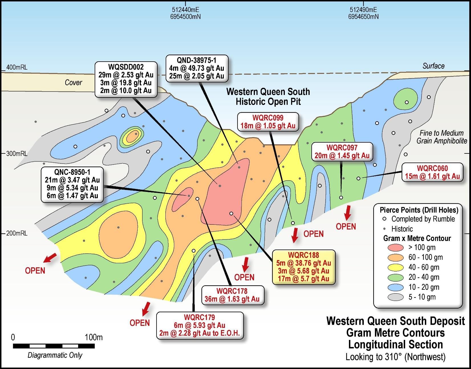 Technical Director Brett Keillor said: "Defining multiple high-grade gold zones (in section) within the core of the main Western Queen South deposit highlights the potential of multiple high-grade shoots along strike and in section over the 2km of open mineralisation defined by the (3) phases of drilling completed by Rumble. This augurs well for the potential of a substantial high-grade gold underground operation, especially with the Western Queen South deposit with respect to the competent amphibolite host which is amenable to stable ground conditions."