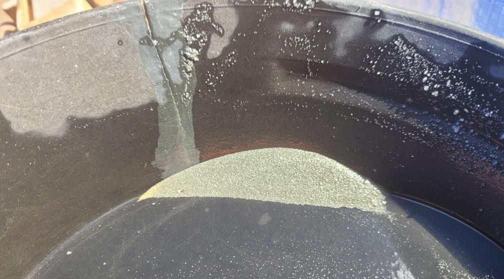 A 2.5 kg sample of drill cuttings from PTORC 022 (154-155m) and PTORC 024 (156-157) were also panned off to confirm the presence of visible gold and with both intervals a significant tail of fine gold was observed - see photographs 1 + 2*.