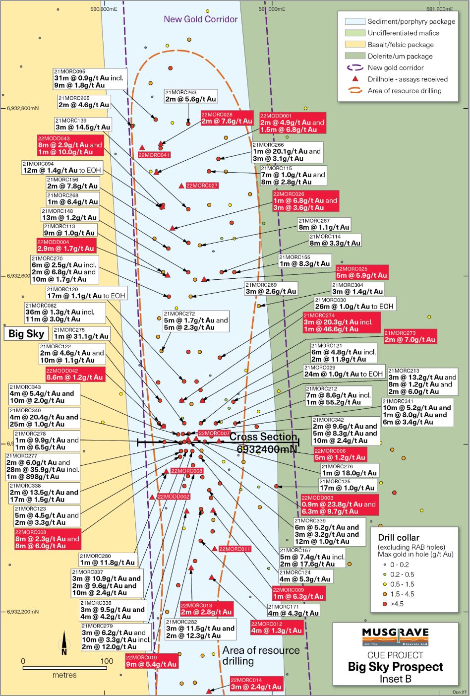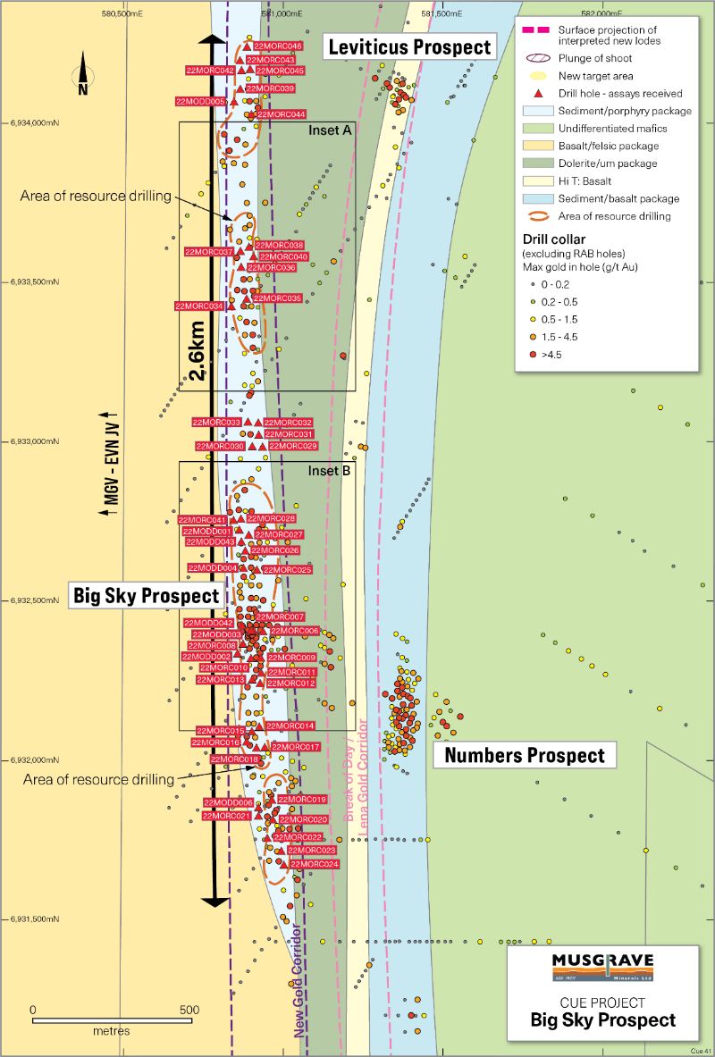 MGVMF:OTCMKTS) is pleased to report further strong assay results from reverse circulation ("RC") and diamond drilling at the Big Sky Prospect along the new gold corridor south-west of Lena and Break of Day, on its 100% owned ground at its flagship Cue Gold Project in Western Australia's Murchison district (Figure 1). All recent drilling results for Big Sky have now been received and will form the basis for a maiden Mineral Resource Estimate that will focus on the near surface mineralisation at Big Sky. The scheduled mineral resource update will also include a maiden resource for the high-grade White Heat-Mosaic deposit and is expected to be completed in MayJune 2022.