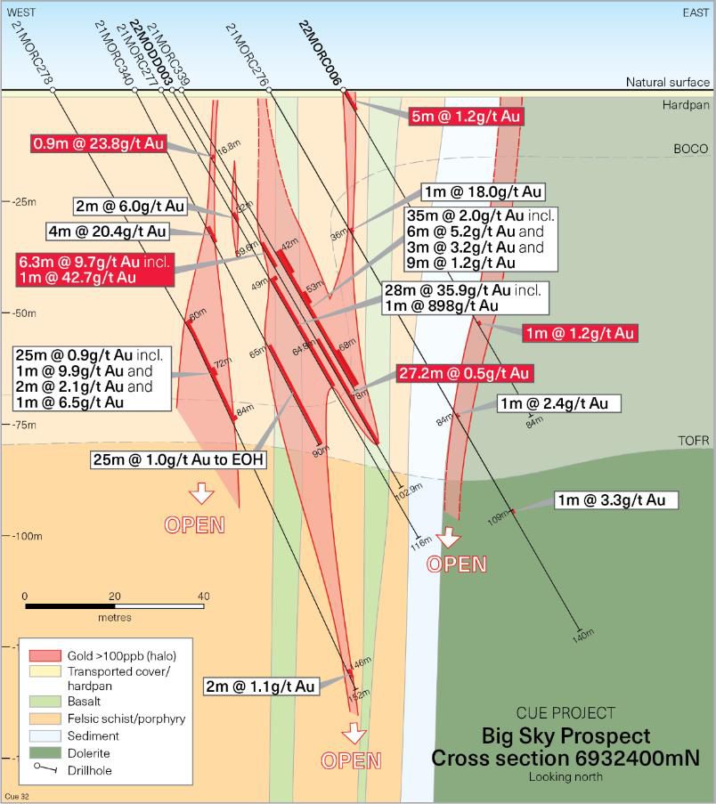 The extensive nature and continuity of the gold mineralisation supports the view that the Big Sky prospect has strong potential to significantly add to the Company's existing resource base at Cue.