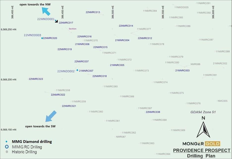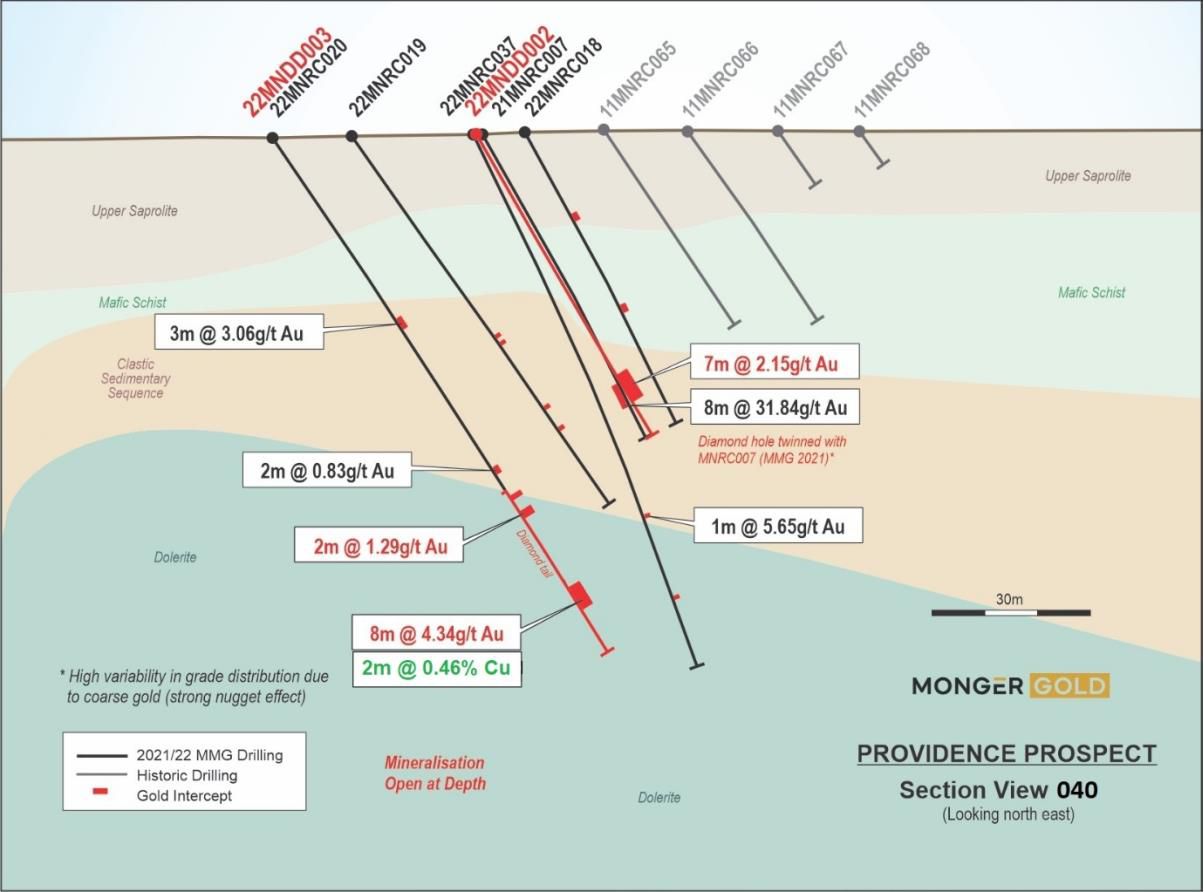 ASX:MMG) is pleased to announce that multi-element assays from one diamond drill hole 22MNDD003, completed at the Providence Prospect, Monger North, have returned significant copper associated with the high-grade gold results (5 May 2022: Drilling at Providence Uncovers Significant Gold Results).