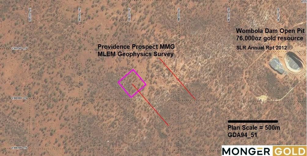MMG recently discovered the Ben Nevis Prospect copper-zinc rock chip anomaly along strike 10km to the southeast at our Mount Monger South Project and while a planned surface EM geophysics survey is completed across this prospect, after this survey, we have locked in an EM survey across the Providence Prospect to be completed in June '22. This EM survey will look for the extent of massive sulphides associated with both copper and gold at Providence and may allow us to more effectively target the copper-gold rich zones with drilling. At Providence, initially two MLTEM lines have been planned by Southern Geoscience Consultants Pty Ltd to establish the conductor's orientation and location to maximise the effectiveness of a FLTEM survey (fig. 4*). On completion of the two lines a detailed FLTEM survey can be planned to maximise coupling with any conductors. The two lines consist of 200x200m loop with 50m moves for a total of 24 stations.