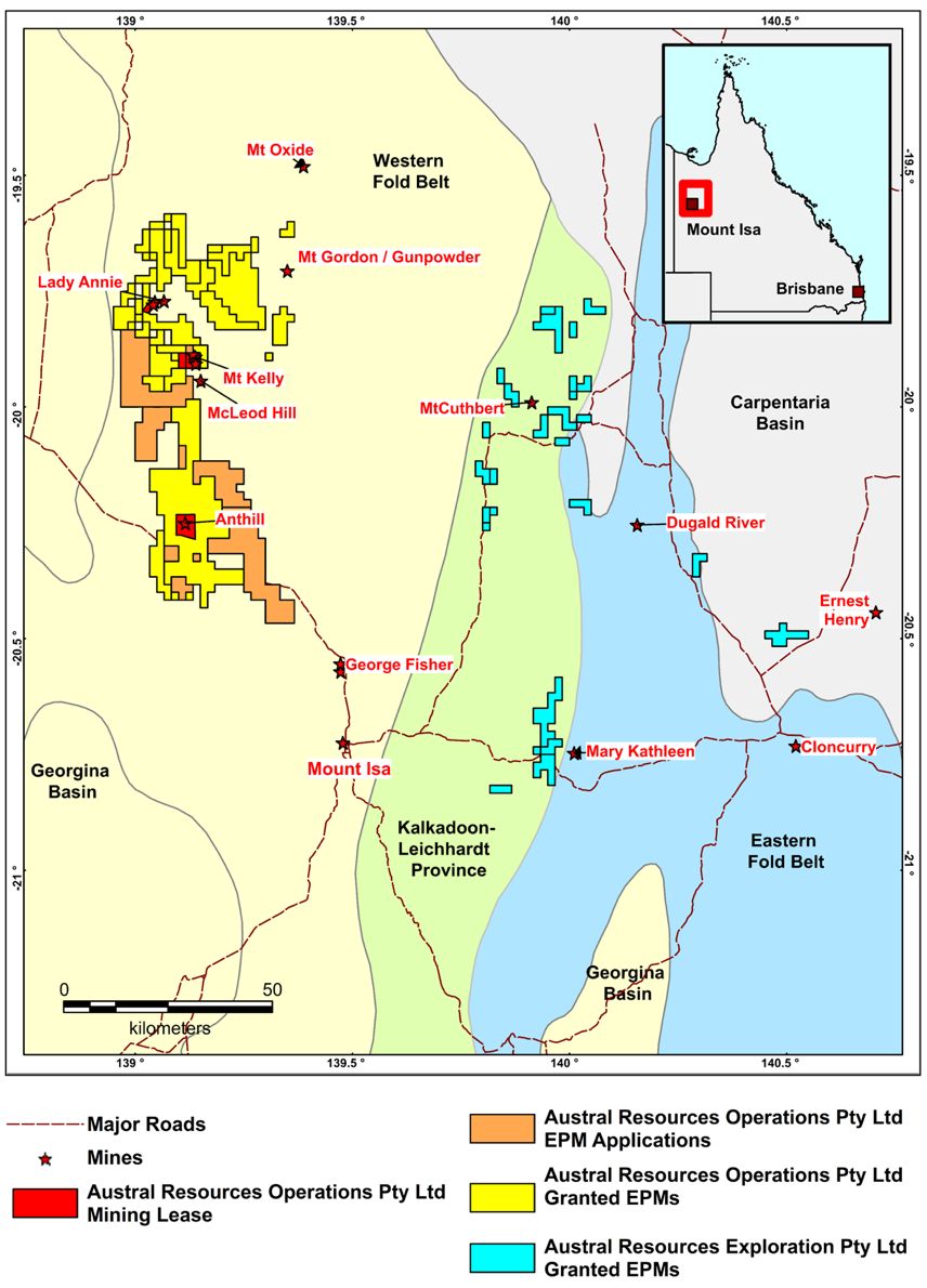 Austral owns a significant copper inventory with a JORC compliant Mineral Resource Estimate of 60Mt at 0.7% Cu and 1,940km2 of highly prospective exploration tenure in the heart of the Mt Isa district, a world class copper and base metals province. The Company is implementing an intensive exploration and development programme designed to extend the life of mine and increase then review options to commercialise its copper resources.