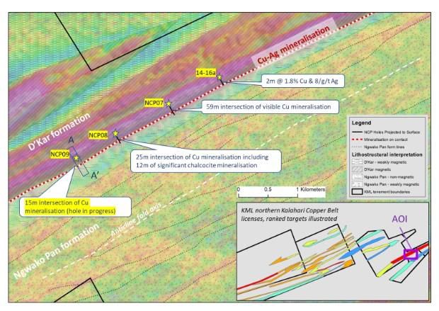 This initial drill programme was designed to test the first of 57 ranked targets across KML's extensive license holding on the relatively unexplored northern margin of the KCB. Proving the occurrence of a significant strike length of copper mineralisation highlights the potential of this district to deliver new discoveries.