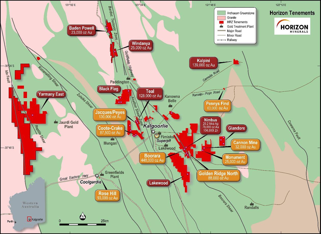 - Horizon Minerals owns 100% of the fully permitted Pennys Find gold mine located 50km northeast of Kalgoorlie in the Goldfields of Western Australia