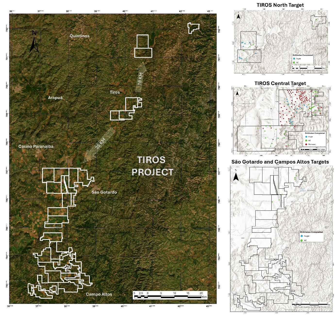 Figure 1*, in link below, demonstrates the spatial distribution between the Tiros North (Northern block), Tiros Central (Central), Sao Gotardo and Campos Altos (Southern) targets. Mineral Resource Estimation is currently limited to the Tiros Central target.