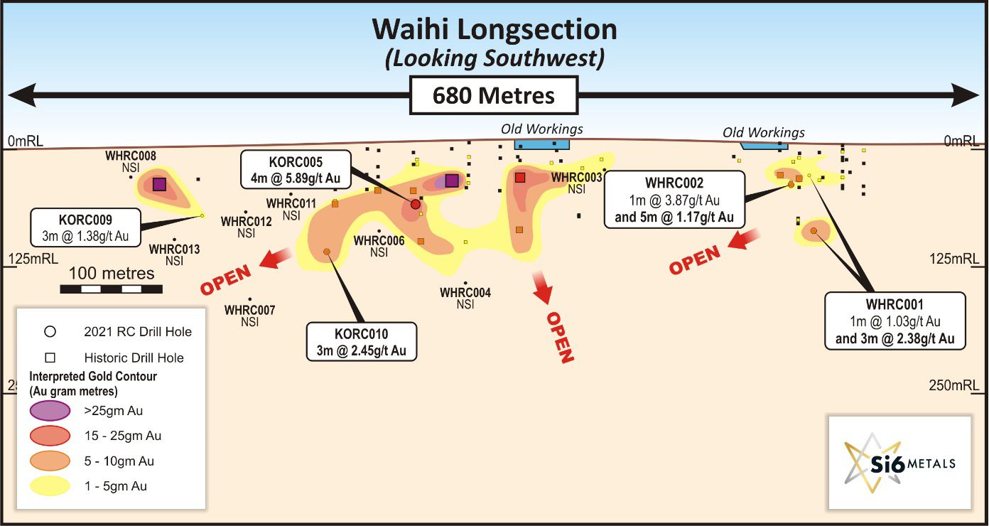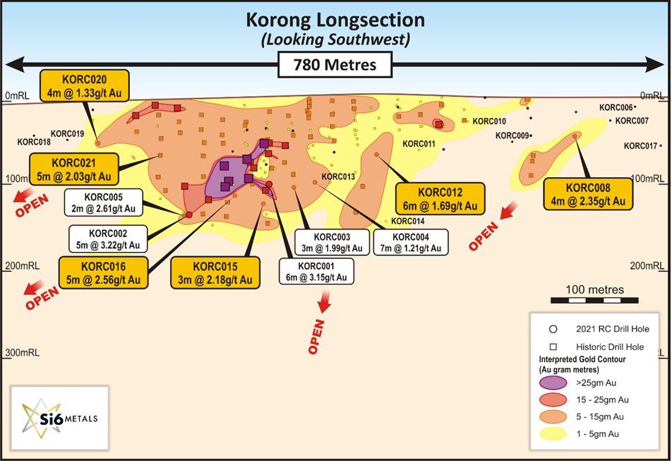 Mineralisation remains open along strike at Korong and Waihi and at depth, down-plunge of the modelled higher grade shoots.
