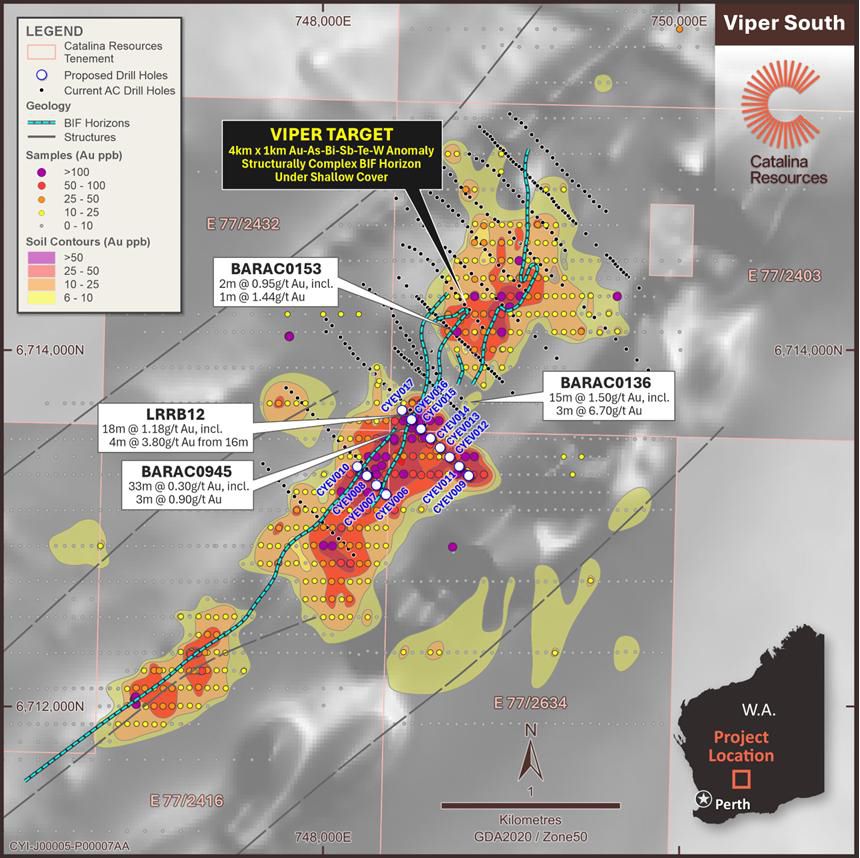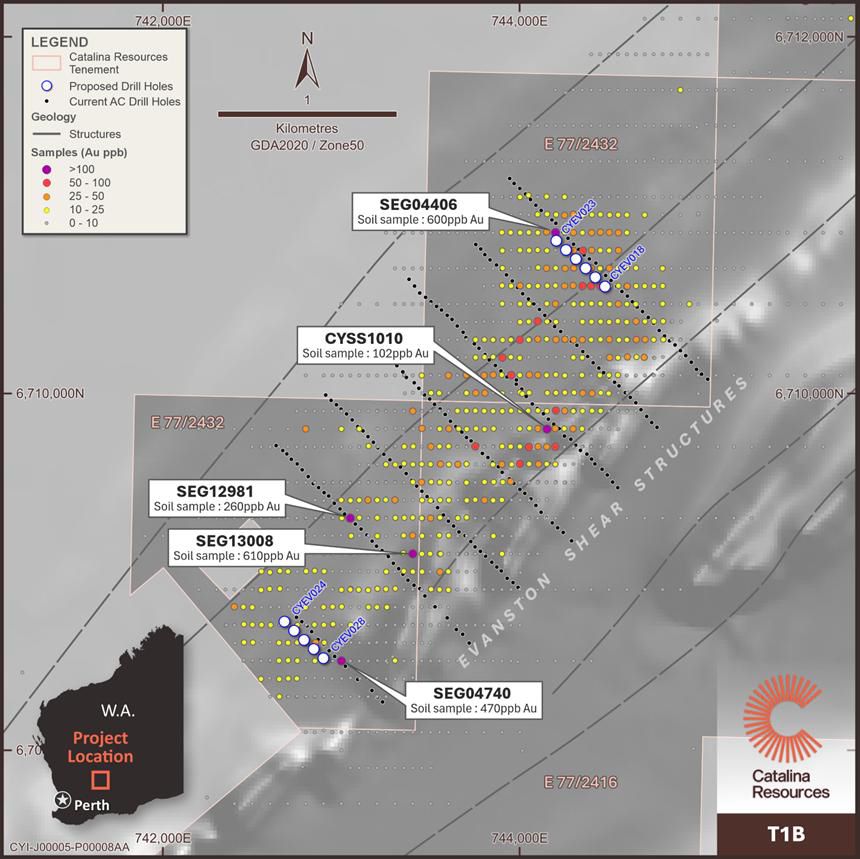 - ~7,760m of combined RC and AC drilling planned across priority targets at Evanston (Leghorn, Viper South, T1B) and Yerilgee (T8, Chicken little, Snowflake)