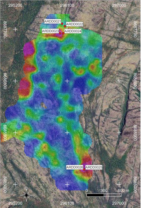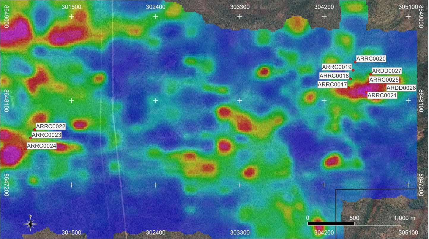 o Best intersections include: ARRC0025: 8 m at 458 ppm eU3O8 from 84 m. ARDD0029: 3 m at 573 ppm eU3O8 from 77 m.