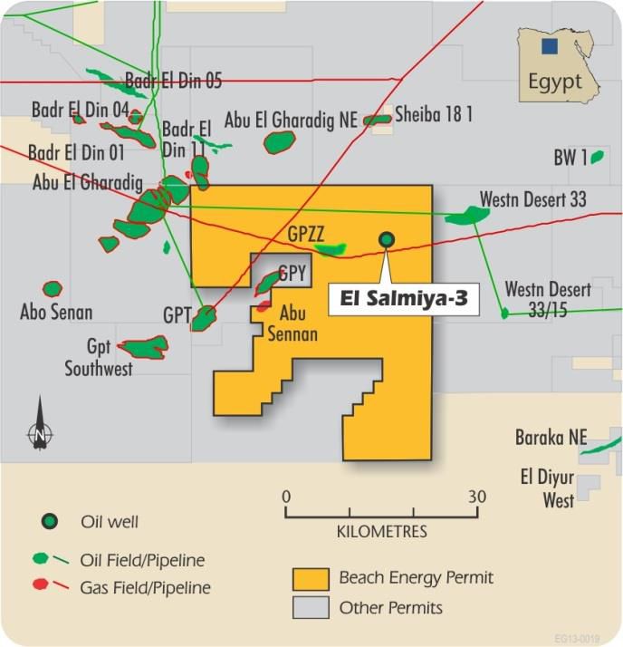 El Salmiya-3 spudded on 8 November 2103 and is currently drilling ahead in the Cretaceous Khoman Formation. The well is designed as an appraisal of the oil discovery from July this year in the lower Cretaceous Kharita Formation. Secondary objectives will be to appraise the Abu Roash and Bahariya discoveries.