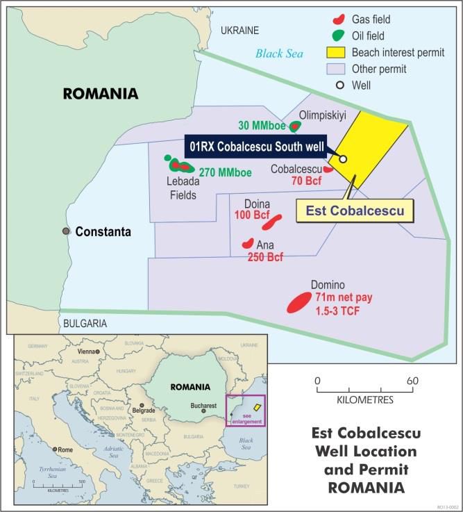 Est Cobalcescu Concession, Black Sea, Romania (Beach 30%, Petroceltic International plc 40% and operator, Petromar Resources SA 30%) The 01RX Cobalcescu South exploration well in Block EX-28 Est Cobalcescu, offshore Romania, was plugged and abandoned after intersecting minor gas shows in upper Miocene sediments. The rig moved off location on 28 November 2013.