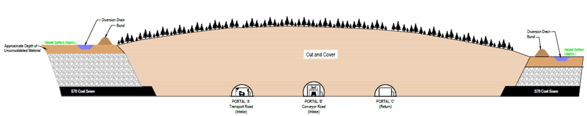The S70 seam has been encountered at depths ranging from 14m to 101m below surface with a net anthracite thickness ranging from 1.0m to 6.4m and averaging approximately 2.5m. Recent drilling has identified a new opportunity in the S60 seam which has been encountered in several drill holes of significant thickness within the PFS and mine portal area, positioned between 30m and 50m below the S70 seam. The S60 seam ranges in drilled thickness from 0.4m to 6.4m and averages 2.5m of net anthracite.
