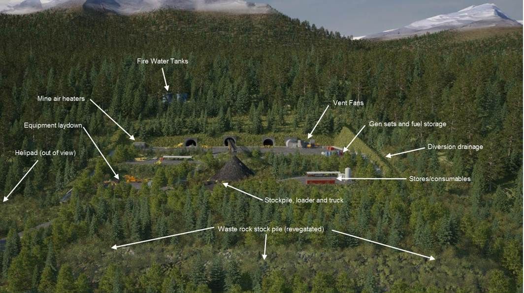 Recent drilling data supports a structure which will allow the Company to expand a small scale shallow adit style underground mining operation within the portal area into a full scale mine.