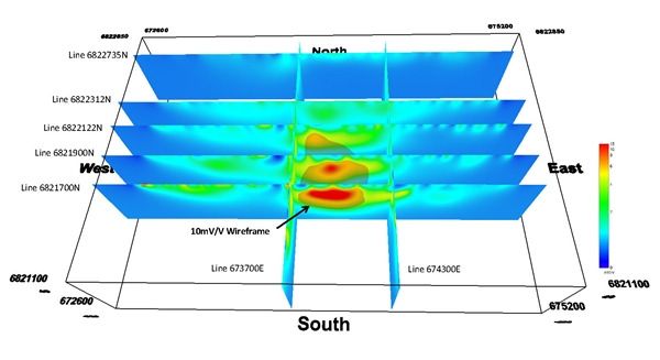 An Induced Polarisation ('IP') survey was recently completed by Vortex Geophysics at Pincher Well Volcanogenic Massive Sulphide Trend ('VMS'). The IP survey results where outstanding and demonstrated the following features: