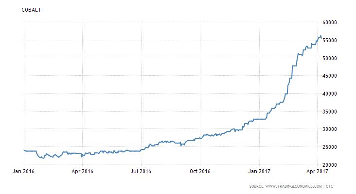 - Cobalt price has risen over 100% in 12 months to ~US$55,500 per tonne