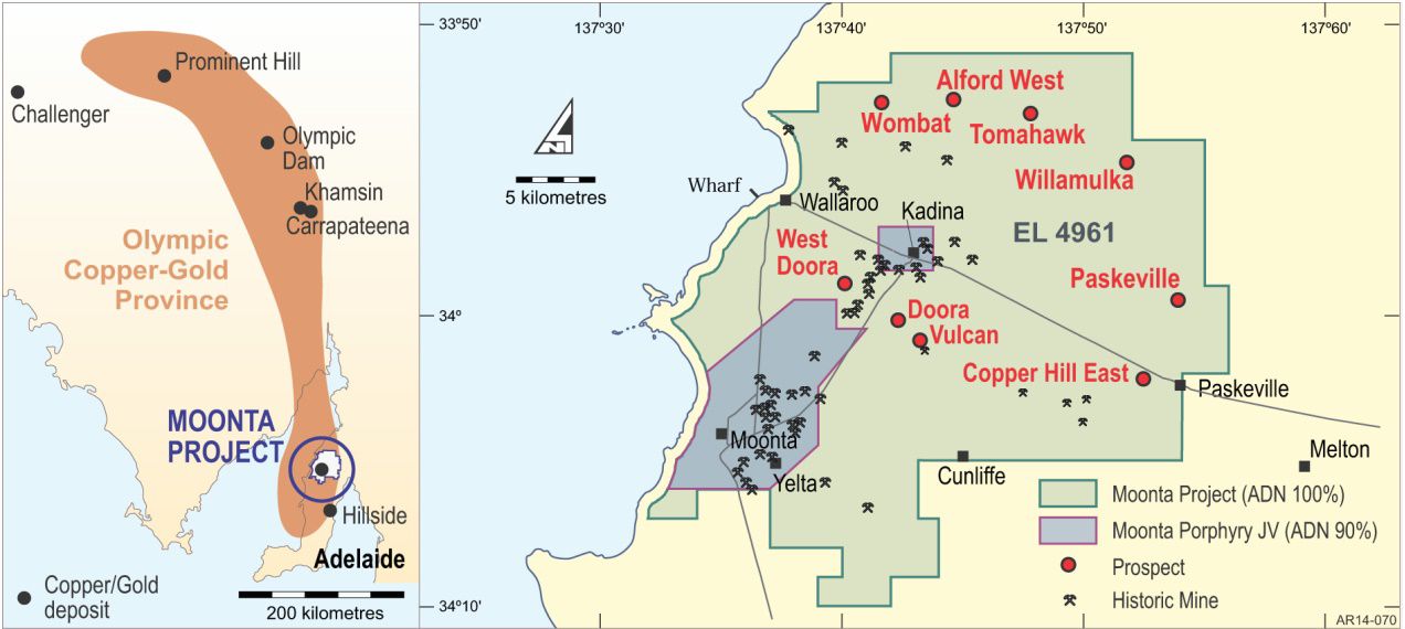 ASX:ADN) holds the 819km2 Moonta copper project on South Australia's Yorke Peninsula (see Figure 1 in the link below). A review of the assay results of Company and historical drill holes on the Moonta copper project has confirmed the presence of significant cobalt at a number of prospects, with the most substantial results at Willamulka and Alford West.