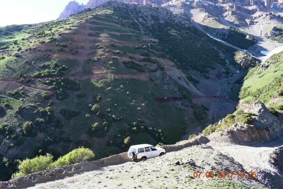 Further up the Chanach valley the track crosses the Chanach River several times and flooding from snow melt had washed away parts of the track and altered the river crossings (see figure 7 in the link below). The bull dozer and excavator have successfully repaired the track to allow project access.