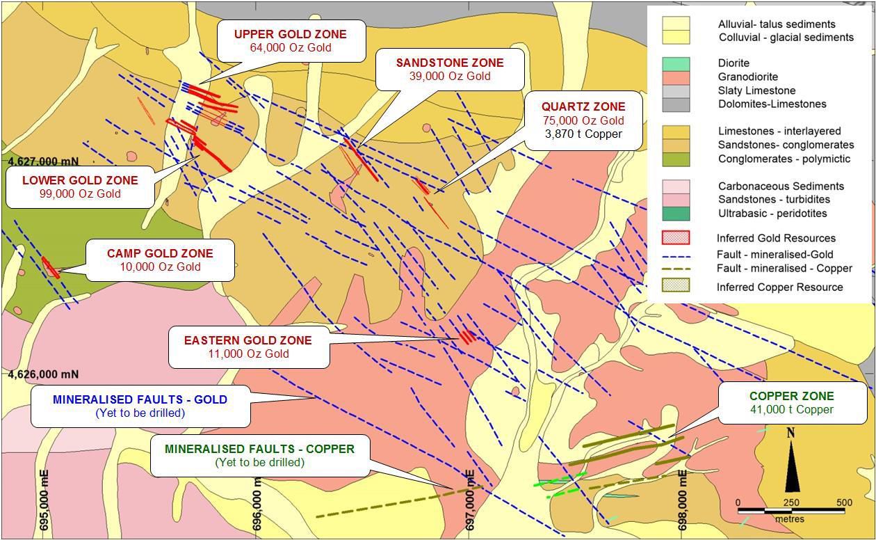 The new gold and copper resources start at surface, have only been drilled to 100 metres vertical depth and remain open along strike and at depth.
