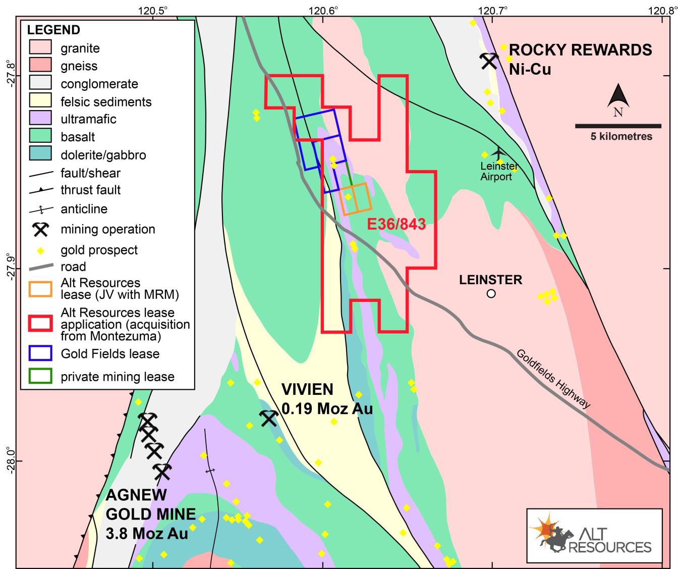 ASX:MZM) to acquire E 36/843. Under the Terms Sheet with Montezuma, Alt have agreed to a cash payment of A$4,465.00, will issue ARS shares to the equivalent of A$50,000.00 and pay Montezuma a Net Smelter Royalty (NSR) of 1% for gold produced within the boundary of E 36/843, excluding Alt's existing mining leases.