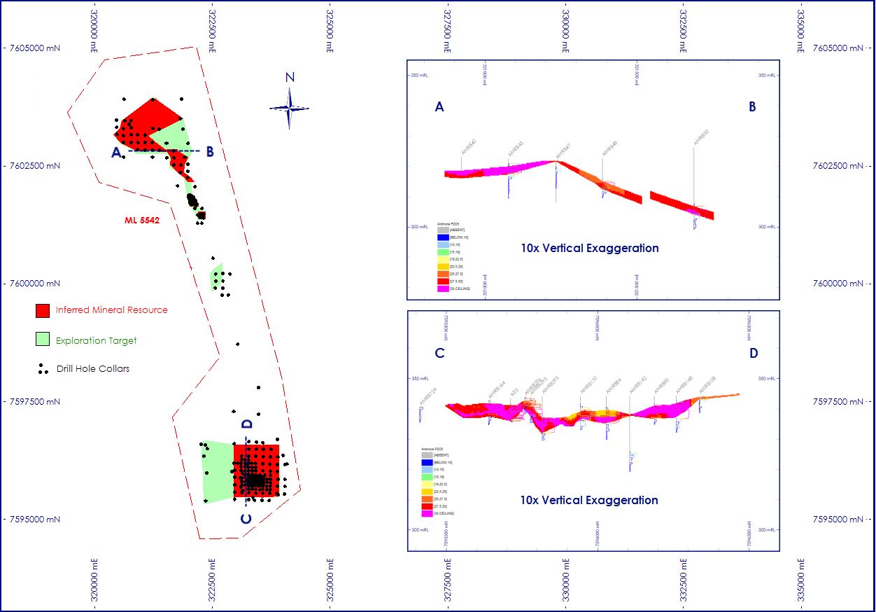 OreWin has estimated an Inferred Mineral Resource of 12 million tonnes at 28.7% P2O5 using a 19% P2O5 cut-off from the areas previously drilled on average equal to or less than 80m by 80m drill spacing. Further areas of the deposit historically drilled at wider spacing have yet to be converted to a Mineral Resource and will require additional infill drilling by Centrex to do so. Whilst there is close-spaced drilling down to 20m by 20m within the Mineral Resource area, further twin holes are planned to validate the sampling techniques. Centrex is planning to commence further drilling in August and will complete sufficient drilling over the entire deposit to a standard suitable for a mining feasibility study.