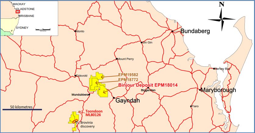 Binjour Bauxite Mining Project & export from Bundaberg State Development Area ("SDA"), involving production of beneficiated metallurgical-grade and cement-grade bauxite from Binjour for export from Bundaberg Port in the Wide Bay Burnett Region of central Queensland.