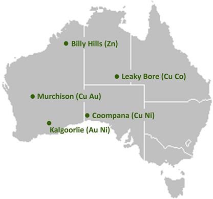 The Company and its exploration partners are actively exploring throughout the Kalgoorlie, West Kimberley and Murchison Districts of Western Australia for economic nickel, copper, zinc, and vanadium deposits.