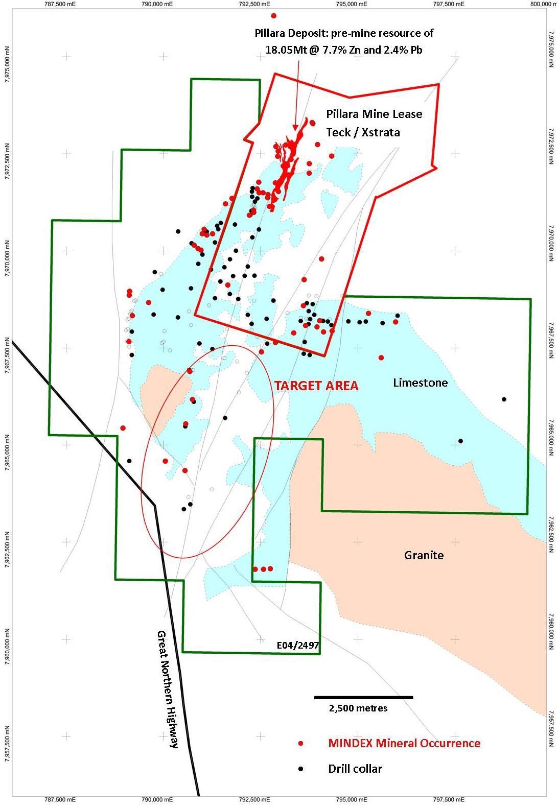 - New 100% - owned tenement application called "Billy Hills" adjoining the Pillara Zinc Mine (pre-mine resource of 18.05 million tonnes at 7.7% Zn and 2.4% Pb). (see the Note below)