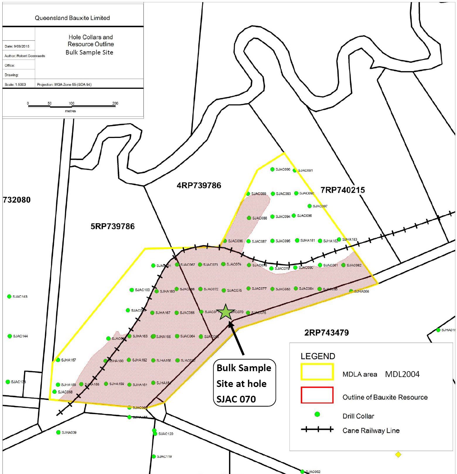 During November 2017, bulk samples were collected from the Camp Creek Bauxite Deposit from a depth interval between 0.6-2.5 metres within the QBL's new mineral development licence MDL2004 (see accompanying map). The bulk samples were taken to enable the Company to export test samples to refineries primarily in China displaying an interest in our product.
