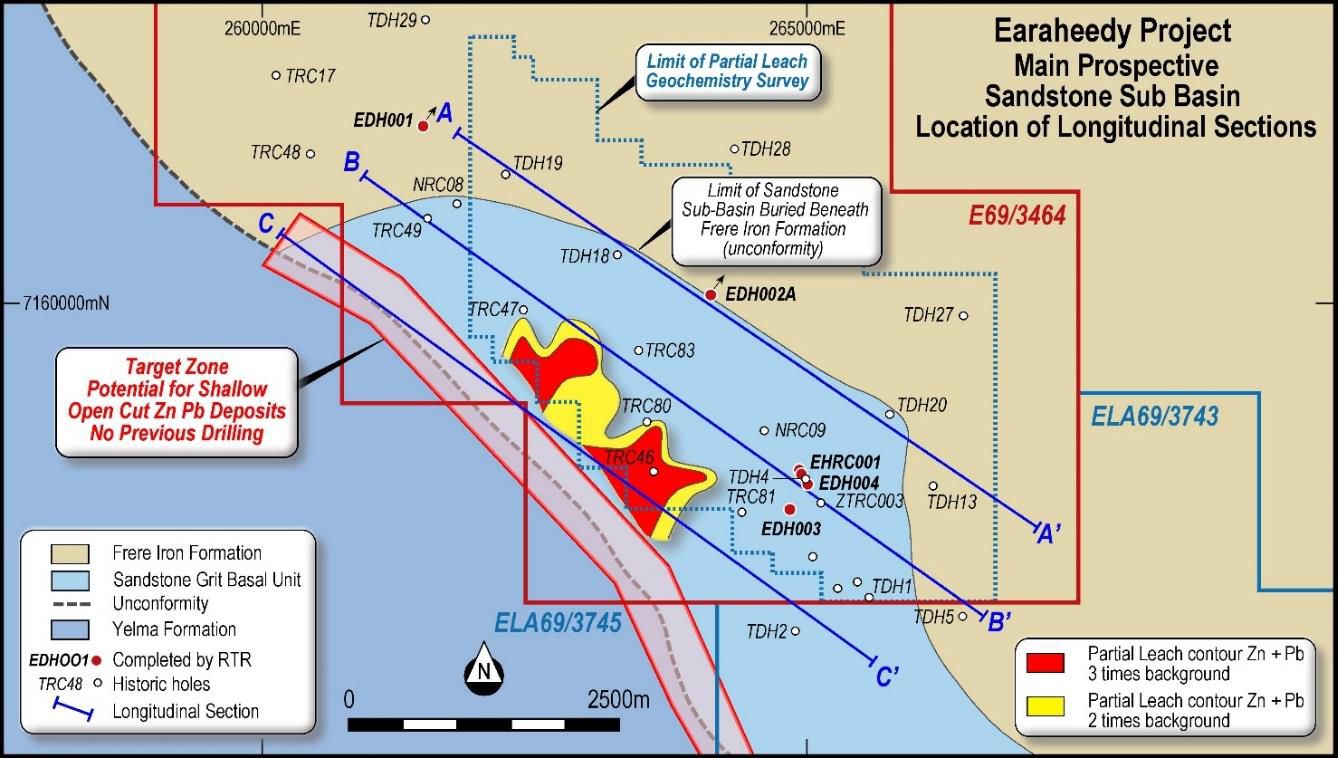 - Shallow vertical RC drilling is planned in December 2019 to test the up-dip position of the Zn Pb bearing sandstone unit. It is planned to drill on approximate 500m centres covering both the Main and Northwest Sandstone Sub Basins.