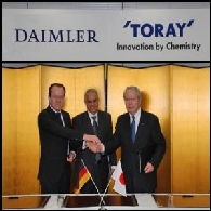 世界上最大的碳素纖維生產商日本東麗工業公司(TYO:3402) (PINK:TRYIY)昨天與德國汽車公司戴姆勒(ETR:DAI) (PINK:DDAIY)簽訂了一份協議,雙方將在德國成立一家合資企業,生產並銷售使用碳纖維增強塑料製造的汽車零部件。