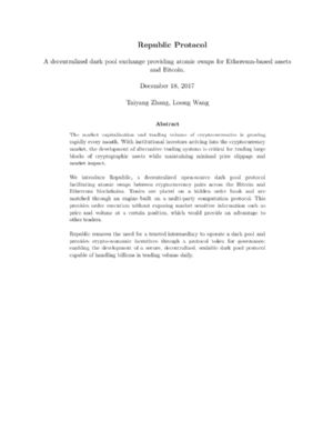 Republic Protocol 共和國協議 (CRYPTO:REN) 無需依賴可信任中介來操作暗池,它通過協議代幣REN來提供獎勵,進而開發出一個安全,可擴展的分佈式暗池交易協議。用戶可以使用Republic Protocol 共和國協議交易BTC,ETH及其他ERC20代幣,其每日處理交易數量可達數十億。