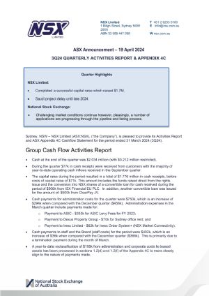 NSX Limited (ASX:NSX) Quarterly Activities and Cash Flow Report