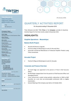 Triton Minerals Ltd (ASX:TON) Quarterly Activities Report - 31 December 2015