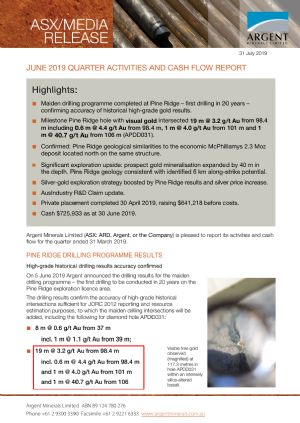 ASX:ARD) is an Australian publicly listed company with a 100% interest in a silver/gold project at Kempfield NSW. Work is underway on the preparation of an EIS and a feasibility study for the first stage of the project which will involve heap leaching some 8.8 million tonnes of mainly oxide and transitional material to produce over 9.5 million ounces of silver and 15,000 ounces of gold over a 5 year mine life. Argent is also earning up to a 70% interest in two other NSW projects - gold at West Wyalong and base metals at Sunny Corner.
