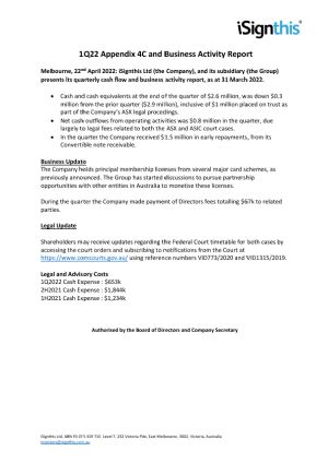 iSignthis Paydentity(TM) service is the trusted back office solution for regulated entities, allowing merchants to stay ahead of the regulatory curve, and focus on growing their core business. iSignthis' subsidiary, iSignthis eMoney Ltd, trades as ISXPay(R), and is an EEA authorised eMoney Monetary Financial Institution, offering card acquiring in the EEA, and Australia.