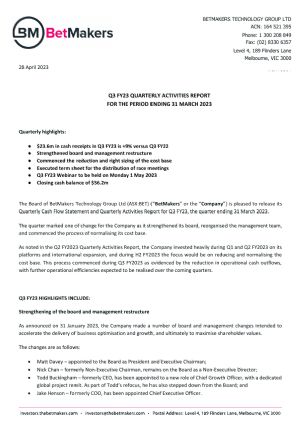 Betmakers Technology Group Ltd (ASX:BET) (OTCMKTS:TPBTF) is an ASX-listed holding company and a global provider of online wagering products and services to both wholesale and retail markets through its various wholly owned subsidiaries. The Company operates a retail wagering business, offering consumers wagering, fantasy tournament and content products and services.