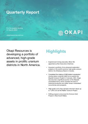 Okapi Resources Limited (ASX:OKR) recently acquired a portfolio of advanced, high grade uranium assets located in the United States of America and in the Athabasca Basin, Canada.