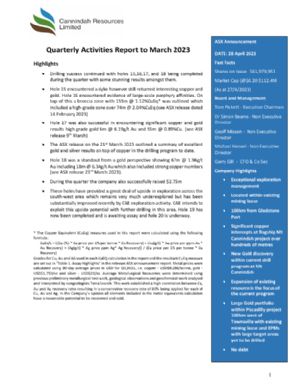 Cannindah's goal is to preserve shareholder wealth and grow the value of the flagship asset with prudent exploration methods. Our focus is to progress further exploration work at the Piccadilly Project and review the possible strategies for Mount Cannindah Project.