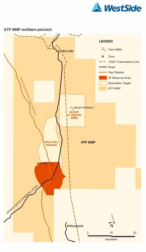 WestSide在ATP688P内Tilbrook试点阐述的初始区域的3P储量股份已经证实有76拍焦耳。这一结果与WestSide在该地区早前的天然气地质储量预测一致,使公司更加有信心转化其所持有天然气地质储量为商业储量,该天然气地质储量预计为14750亿立方英尺。