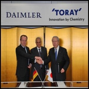 世界上最大的碳素纤维生产商日本东丽工业公司(TYO:3402) (PINK:TRYIY)昨天与德国汽车公司戴姆勒(ETR:DAI) (PINK:DDAIY)签订了一份协议,双方将在德国成立一家合资企业,生产并销售使用碳纤维增强塑料制造的汽车零部件。