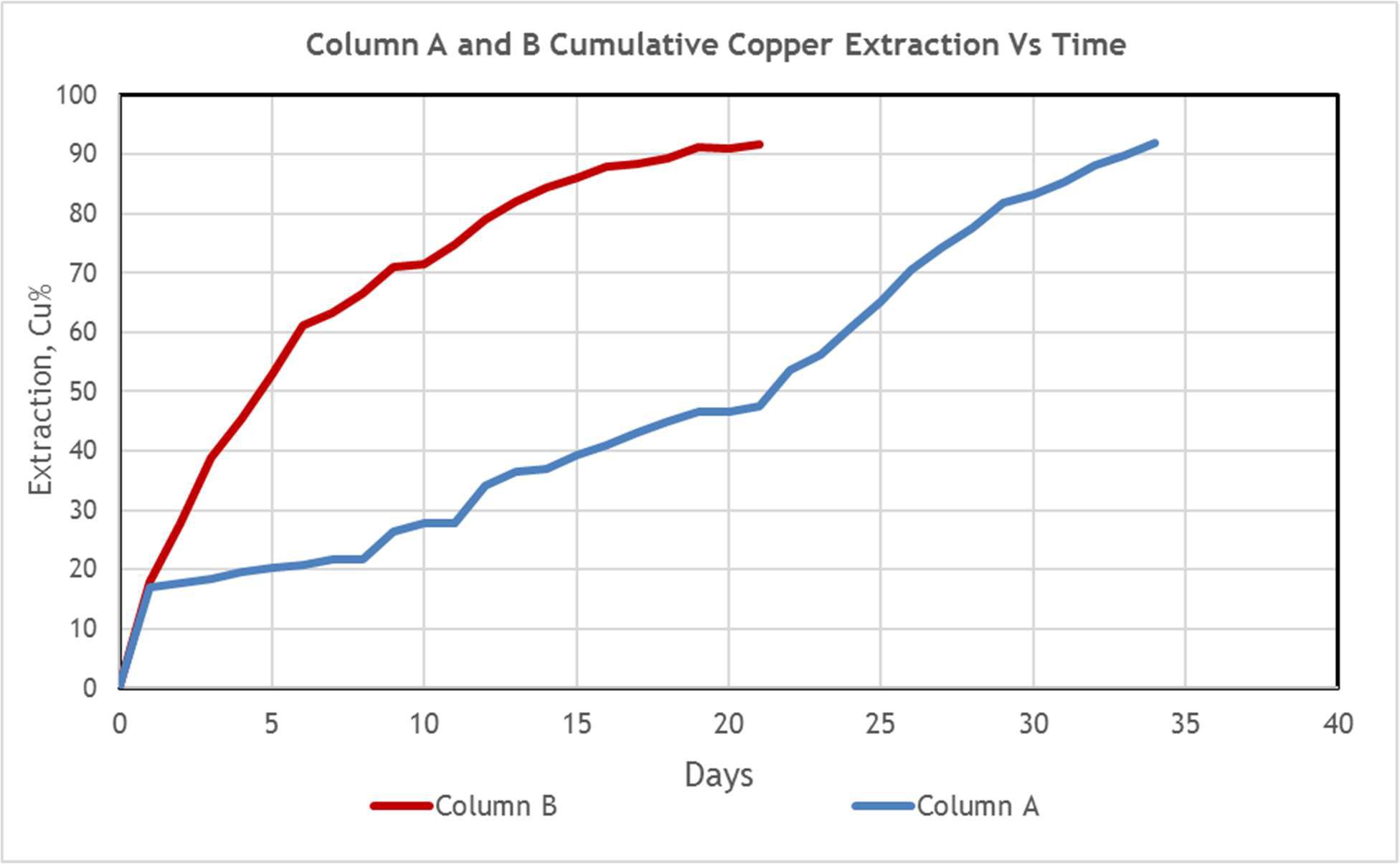 - Copper extraction of 91.9% on Column A in only 34 days