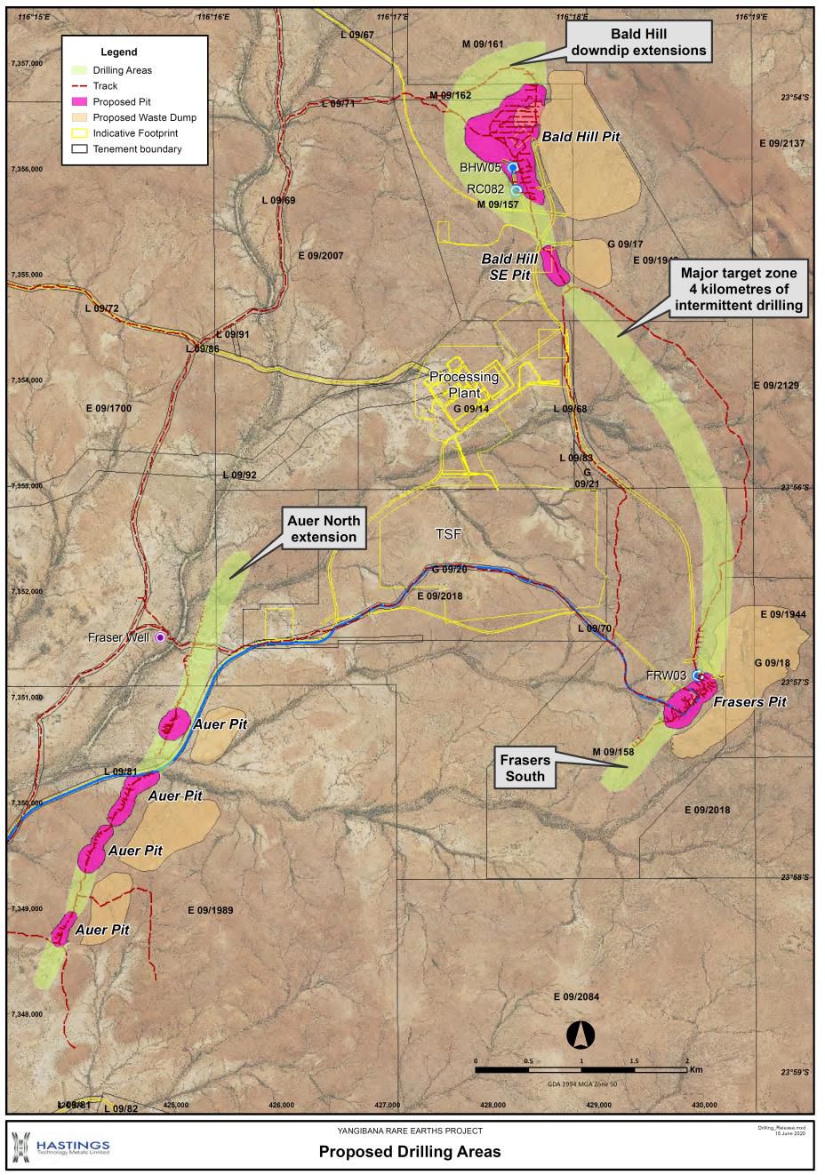 Chief Operating Officer, Andrew Reid commented: "The aim of the RC drilling is to target immediate extensions to the Bald Hill, Frasers, Auer and Yangibana Rare Earth Deposits, with the aim of adding tonnages to the Mineral Resource and additional mine life. This drilling is designed to initiate systematic testing of large strike extensions of the prospective ironstones that have never previously been tested."