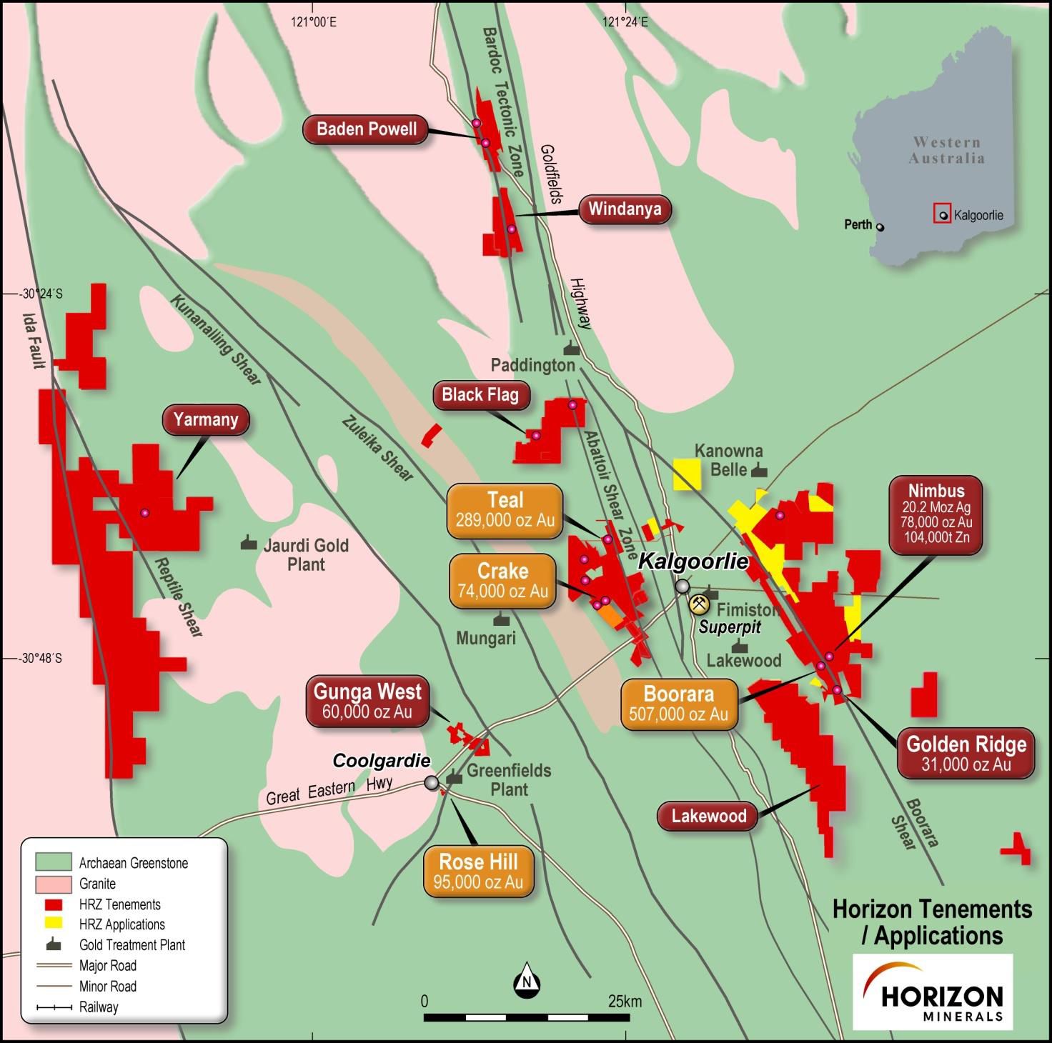 - The Company's 100% owned tenure is located within 75km of Kalgoorlie-Boulder in the heart of the world class Western Australian goldfields