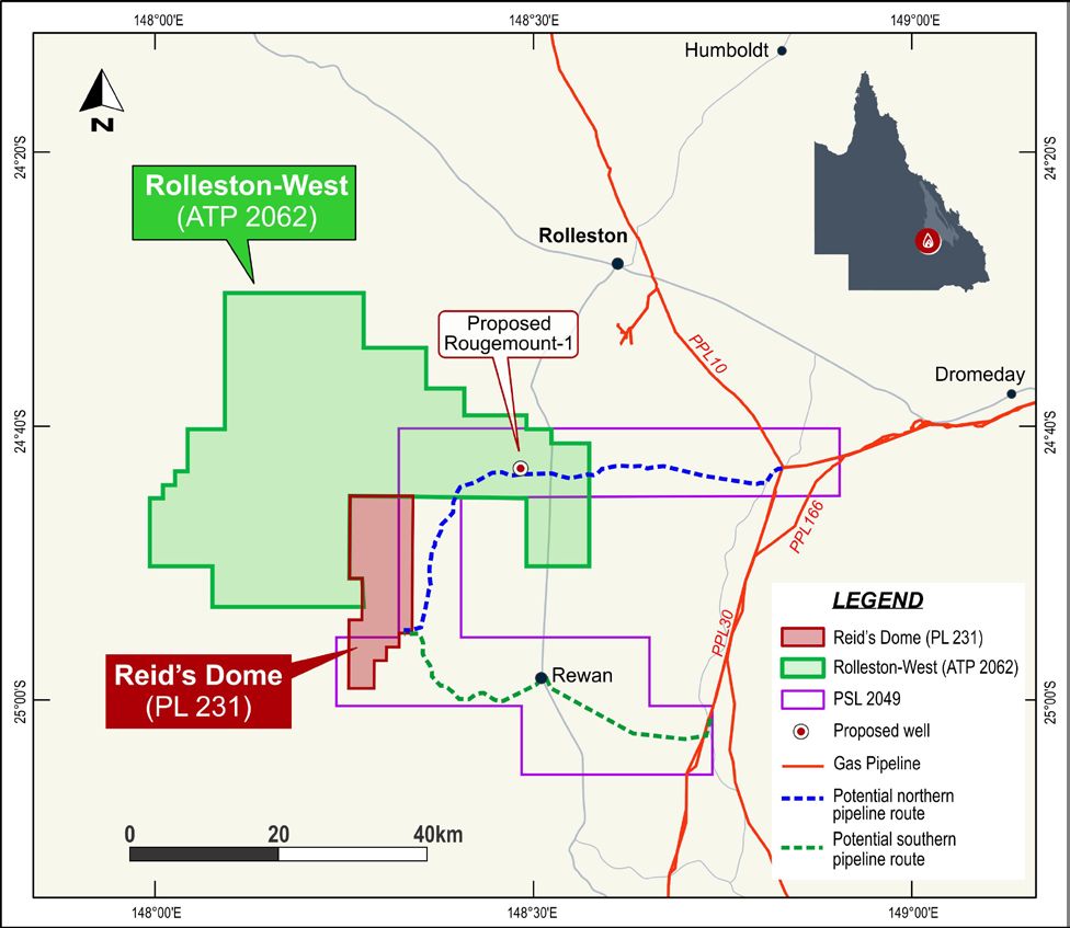 Under sole ownership by State Gas, the contiguous acreage areas (Reid's Dome and Rolleston-West) enable the co-ordination and integration of activities under a unified super-gasfield development that will provide economies of scale, efficient operations, and optionality in marketing. The Company holds Pipeline Survey Licence PSL 2049 (refer Figure 2) which includes potential pipeline routes that would conveniently service both Reid's Dome and Rolleston-West via the same corridor. Neither Reid's Dome nor Rolleston-West are restricted by domestic gas reservation requirements.