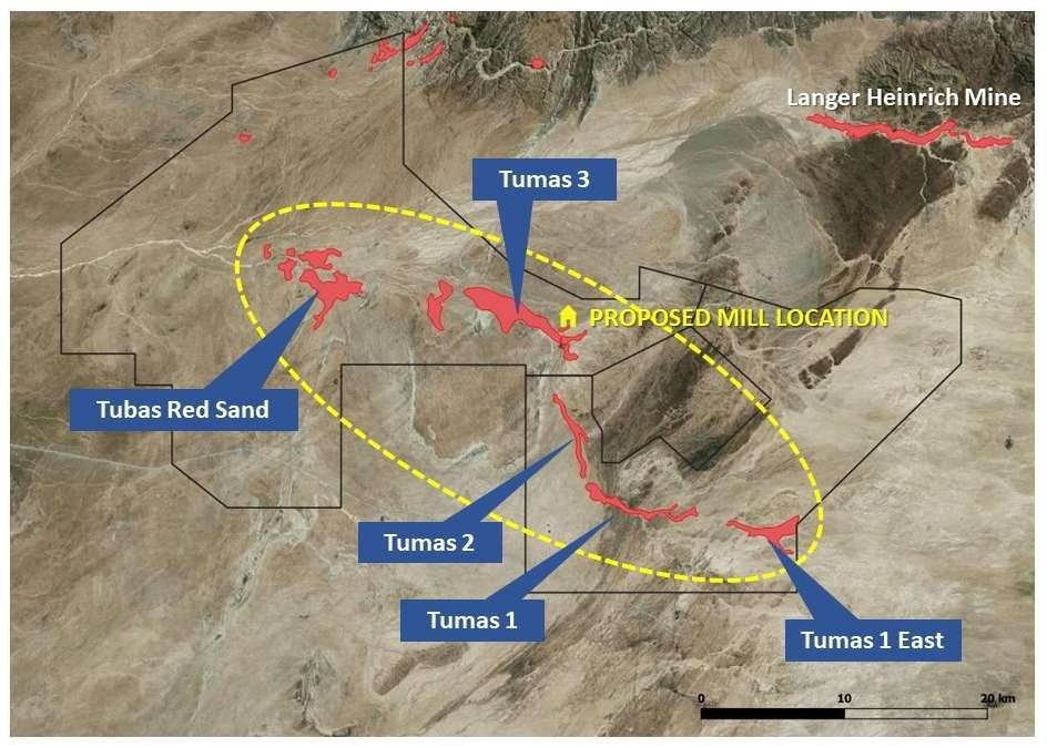 The Tumas PFS was undertaken to further examine the potential viability of mining and processing the Tumas deposits, contained within a 30km radius of a proposed purpose-built processing facility following on from the positive SS competed in January 2020 - see Figure 2*.