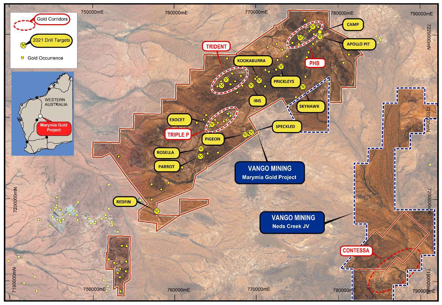 Vango's 2021 drilling campaign is targeting 11 priority open pit targets (Figure 2*) not currently part of the Marymia JORC 2012 resource - 1.02Moz @ 3.0 g/t Au^ - and is designed to add significant nearsurface resources amenable to open pit mining, as part of any future mining operation at the Project.